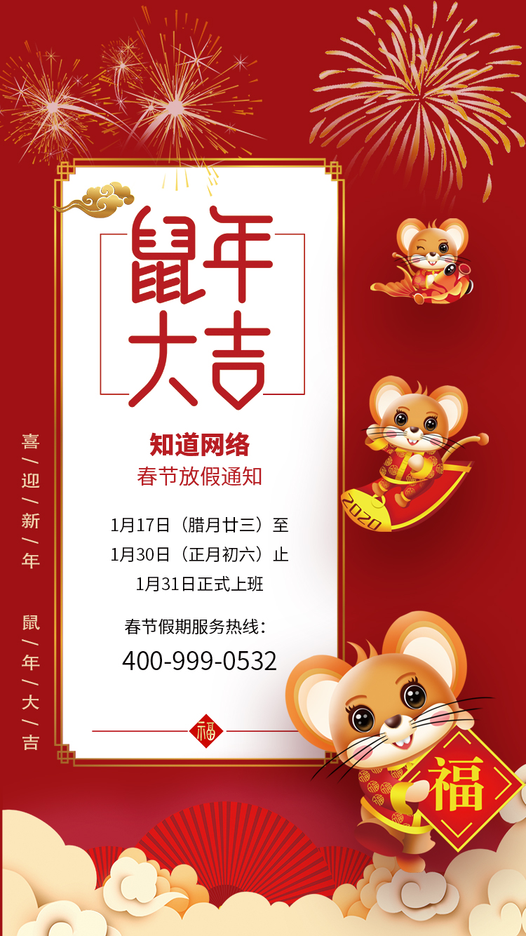 【知道網(wǎng)絡(luò)】2020年春節(jié)放假通知