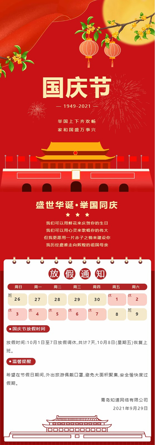 【知道網(wǎng)絡(luò)】國(guó)慶節(jié)放假通知