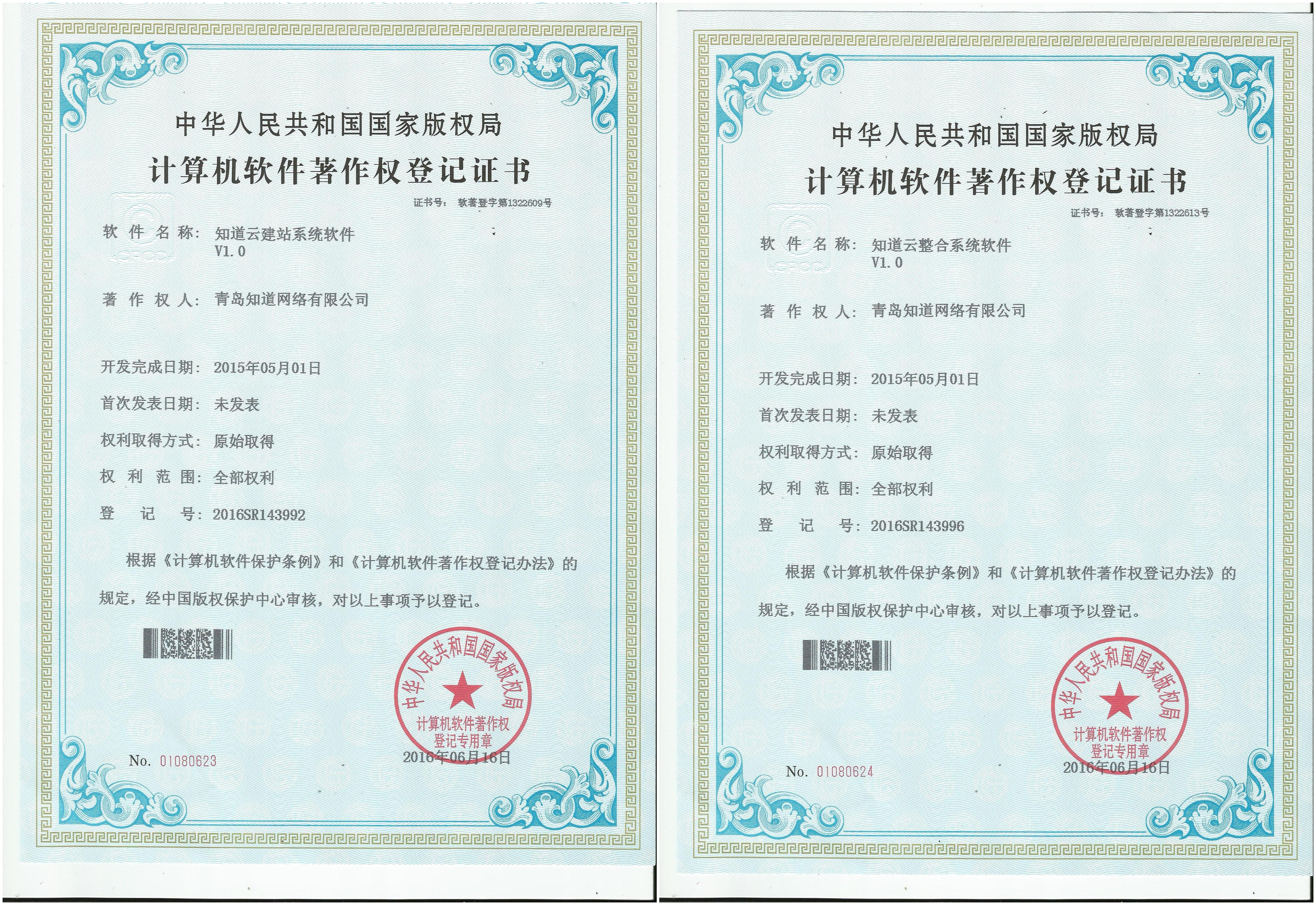 知道網(wǎng)絡(luò)公司:獲得六項(xiàng)軟件著作權(quán)證書