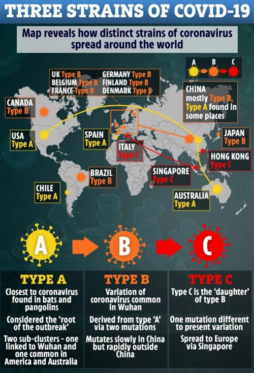 英國科學(xué)家研究發(fā)現(xiàn),新型冠狀病毒在世界各地傳播的過程中變異成了3種不同的毒株,而且“正在快速突變,以適應(yīng)不同人群中的免疫系統(tǒng)抵抗力”。研究還表明,在一些美國人身上發(fā)現(xiàn)的病毒變體與蝙蝠中發(fā)現(xiàn)的病毒關(guān)系最密切。