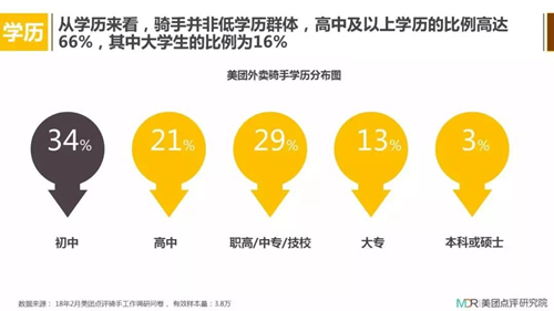 從美團(tuán)點(diǎn)評研究院發(fā)布的《2018年外賣騎手群體研究報告》中我們可以看到,從事騎手職業(yè)的人通常來自小城市且文化水平偏低,這就導(dǎo)致騎手在與消費(fèi)者交流中常因為缺乏溝通技巧產(chǎn)生爭執(zhí)。也親眼見過騎手去咖啡店取餐,因為對咖啡不了解,普通話又不好,溝通浪費(fèi)了很長時間,過程中遭店員頻繁白眼。