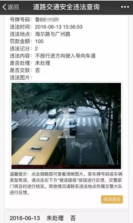 1、違法圖片的查詢和報錯目前僅限青島地區(qū)和市轄高速交警大隊錄入的違法記錄。