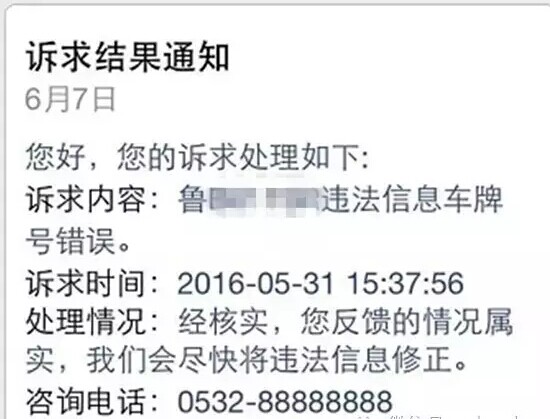 蜀黍們對您提報的反饋信息進行核實后,您的微信會收到“訴求結(jié)果通知”。一般為兩種情況:“經(jīng)核實,您反饋的情況屬實,我們會盡快將違法信息修正。”或“經(jīng)核實,您反饋的情況不屬實。如仍有疑義,請到違法所在地交警大隊咨詢、處理。 ”