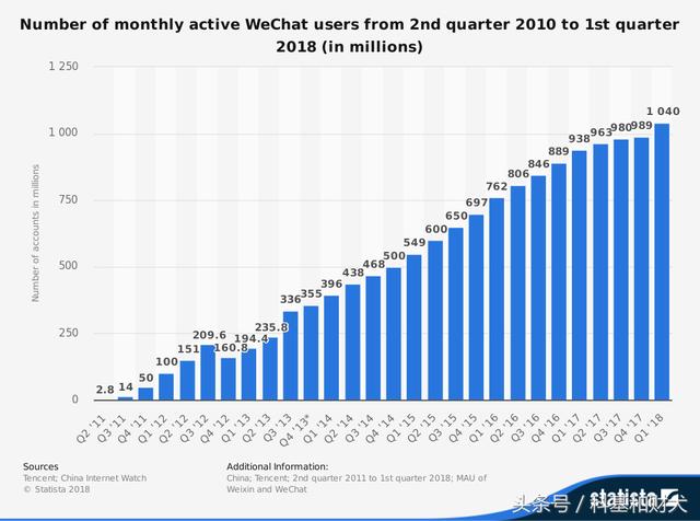 Facebook月活用戶達(dá)到10億用了8年時(shí)間(2004-2012),微信則用了7年(2011-2018)。雖然微信速度更快,但是兩者起步時(shí)的互聯(lián)網(wǎng)環(huán)境大相徑庭。